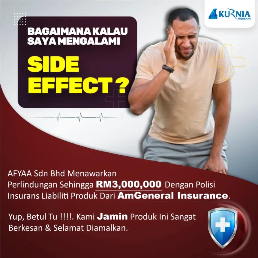 Setiap Pelanggan Yang Membeli Produk Keluaran AFYAA Akan Di Lindungi Insuran. Sekiranya ada kesan sampingan yang memudaratkan selepas mengamalkan SAHIYYApelanggan boleh buat tuntuntan insuran.
